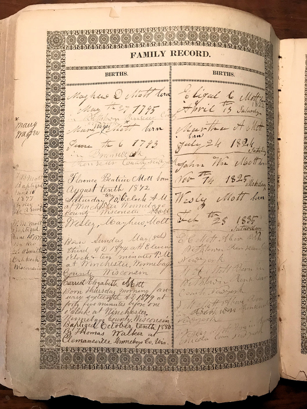 The Mott Family Bible of Mayhew Daggett Mott (1795-1869)